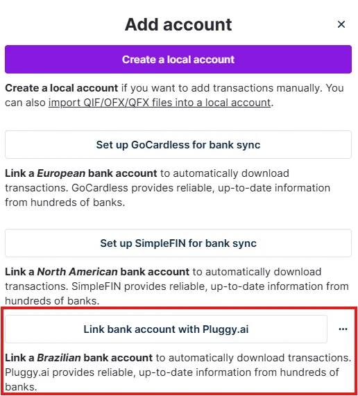Select Link your bank account with Pluggy.ai.